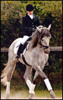 From his great sire, Majorio II (one of the few Andalusians to tour with the “Royal Lipizzan Stallion Show”), Majo has inherited his potential for “airs above the ground”. While in the pasture, he plays at high school movements.